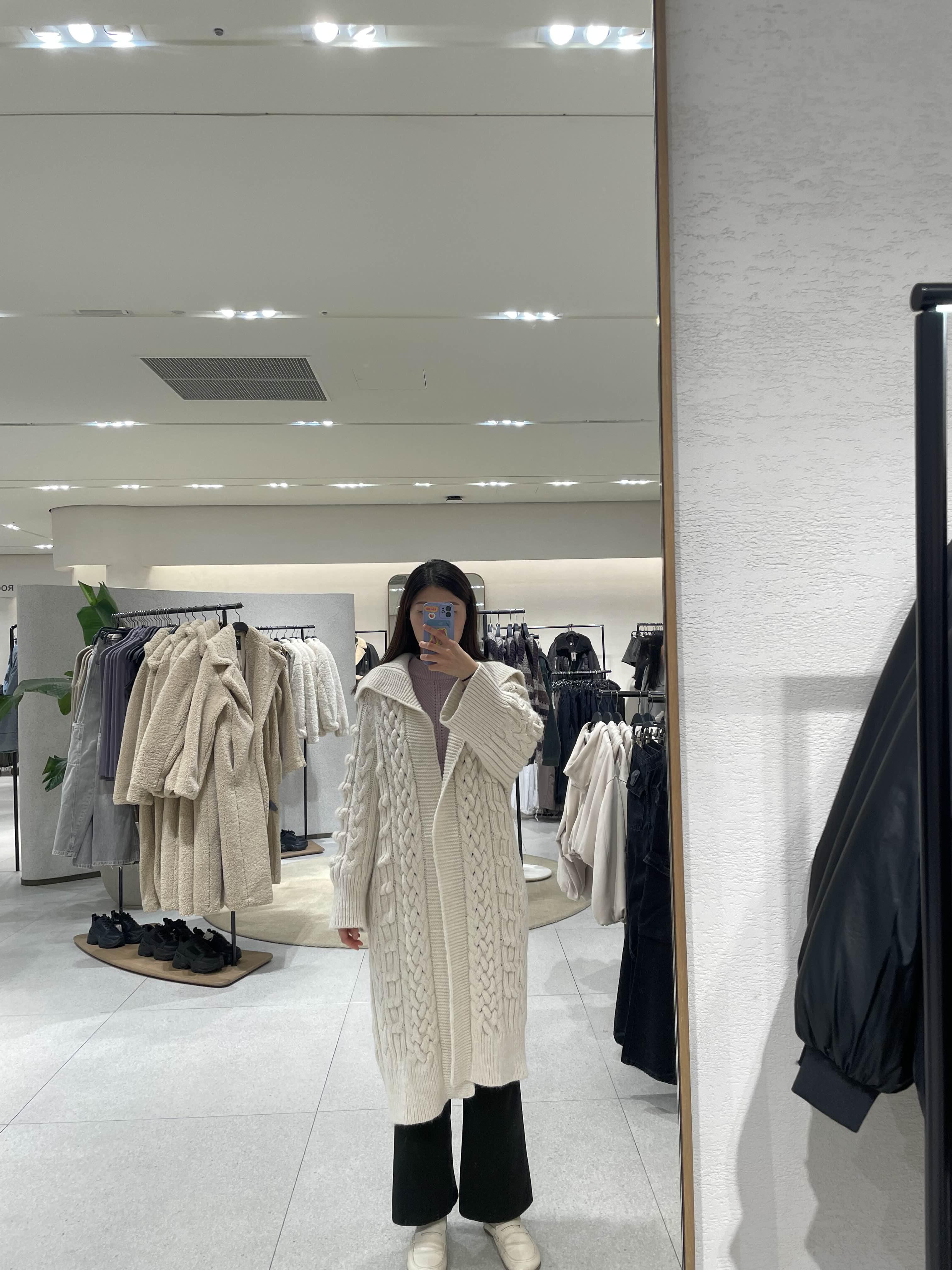 첫번째로 입어본 제품은 자라 스트럭처 니트 코트 입니다. 보자마자 고급스러운 느낌이 뿜뿜하는 니트 코트라서 걸쳐보고 싶더라고요.