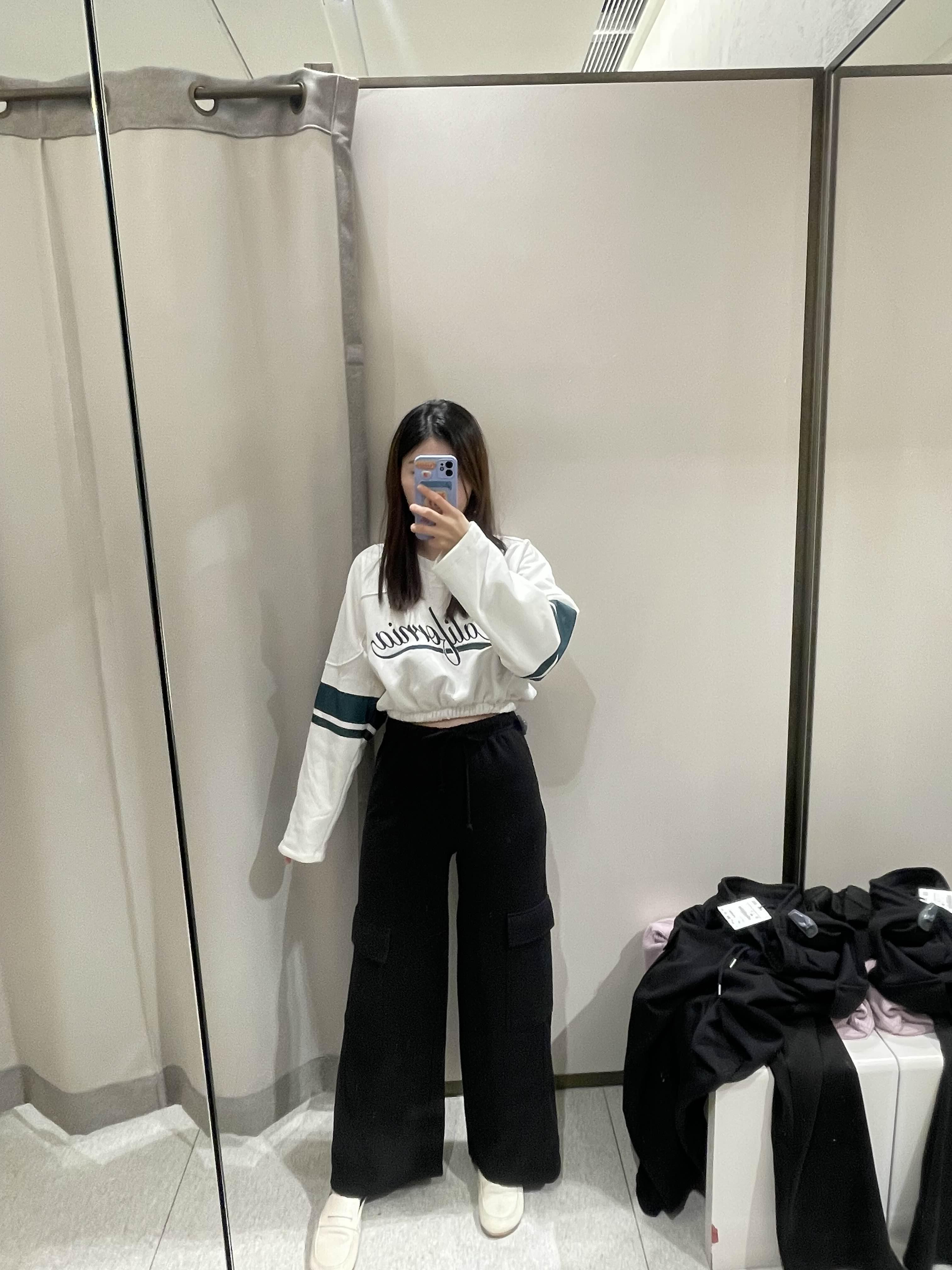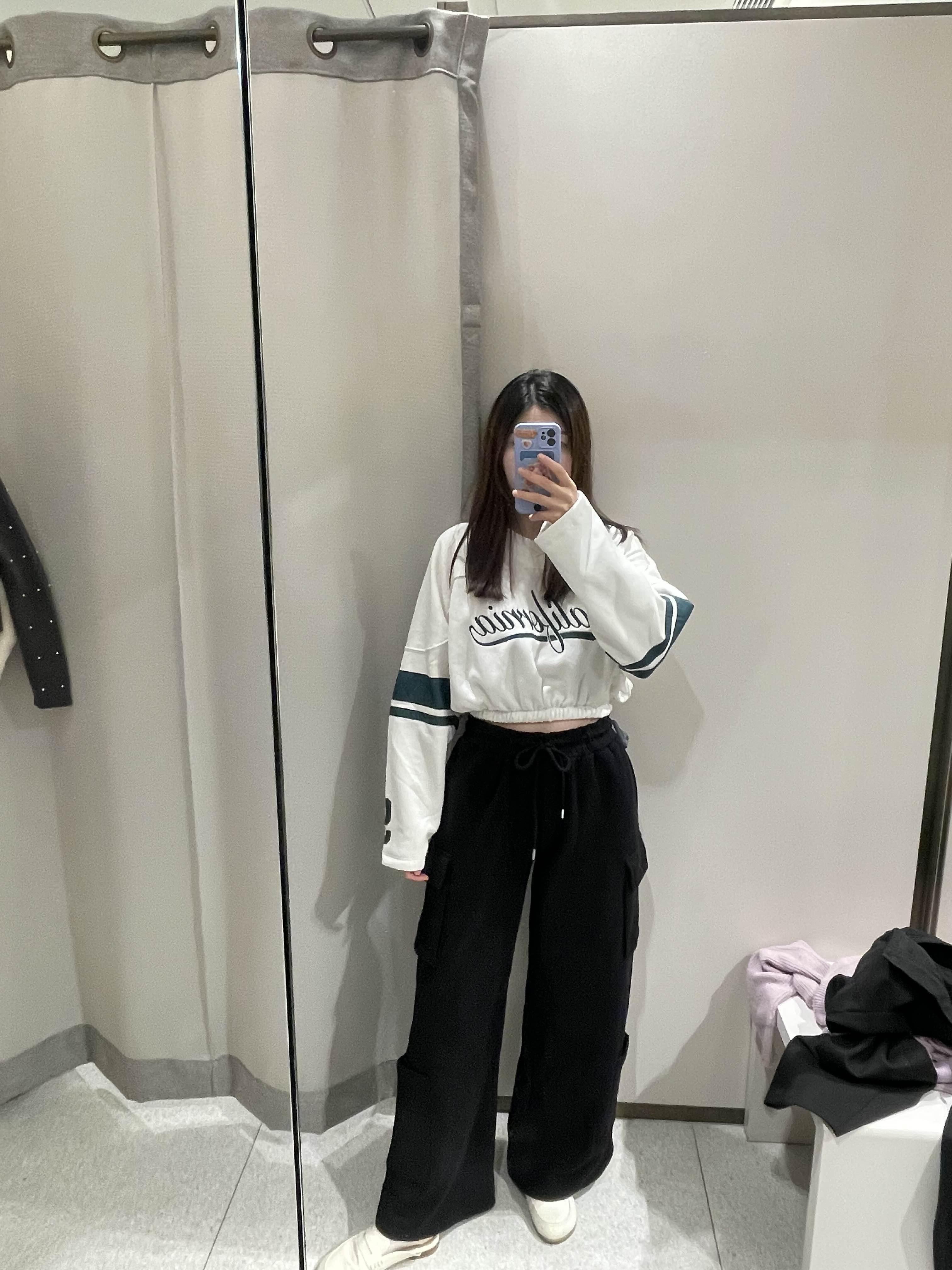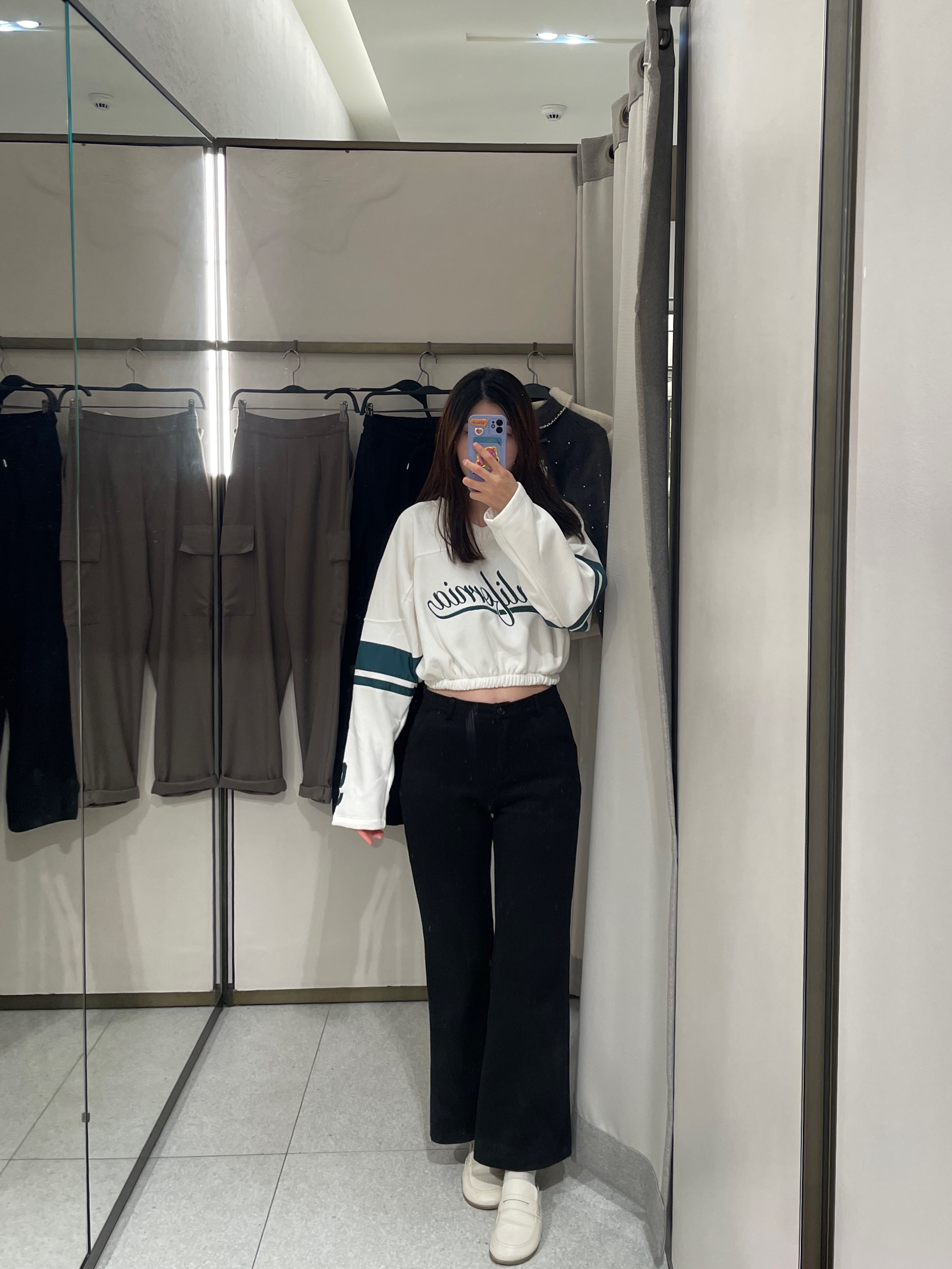 이 제품 힙하고 편하고 다해요. 크롭기장이라 부담되기는 하지만 날씬해보이고 귀여워요. 게다가 안에는 기모라서 겨울에 입기 좋은 제품.